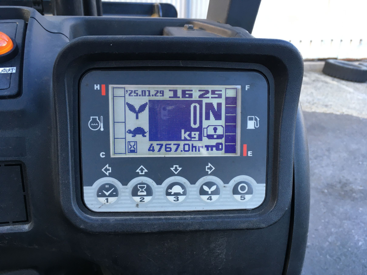 Модель: FGE15T5. Номiнальна вантажопідйомність 1,5 тонни. Максимальна висота підйому вантажу 3 метри. Щогла двохсекційна (duplex) яка не втрачає вантажопідйомності при висоті підйому. Двигун газ-бензиновий, з заводським газовим обладнанням, завдяки чому автонавантажувач у теплу пору року можє запускатись вiдразу на газу, без прогріву системи на бензині. 2018 рiк (напрацювання 4766 м/год). Меню перекладено англійською мовою для зручності. Коробка перемикання передач надiйна i найпоширенiша на данний час - гiдромеханiка (автоматична із гідротрансформатором). Обладнаний найсучаснішим двигуном, економічним інжекторним Nissan GK21. 4-циліндровий, робочим об'ємом 2.1 літра і потужністю 48 к. с. який славиться своєю надійністю і невибагливістю і без змін встановлюється на автонавантажувачах по сьогоднішній день і головне ремонтопридатний. Колеса 10 діаметра на ведучiй осі, що покращує прохідність автонавантажувача і збільшує його кліренс.